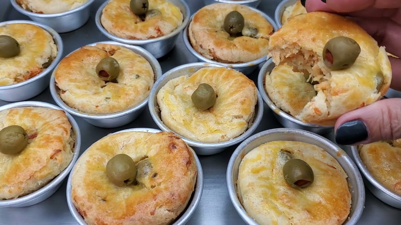 Essa empadinha é diferente de tudo o que você já provou. Com uma massa leve, fina e que literalmente derrete na boca, ela é perfeita para qualquer ocasião — seja para o lanche da tarde, para festas ou até para congelar e ter sempre à mão.